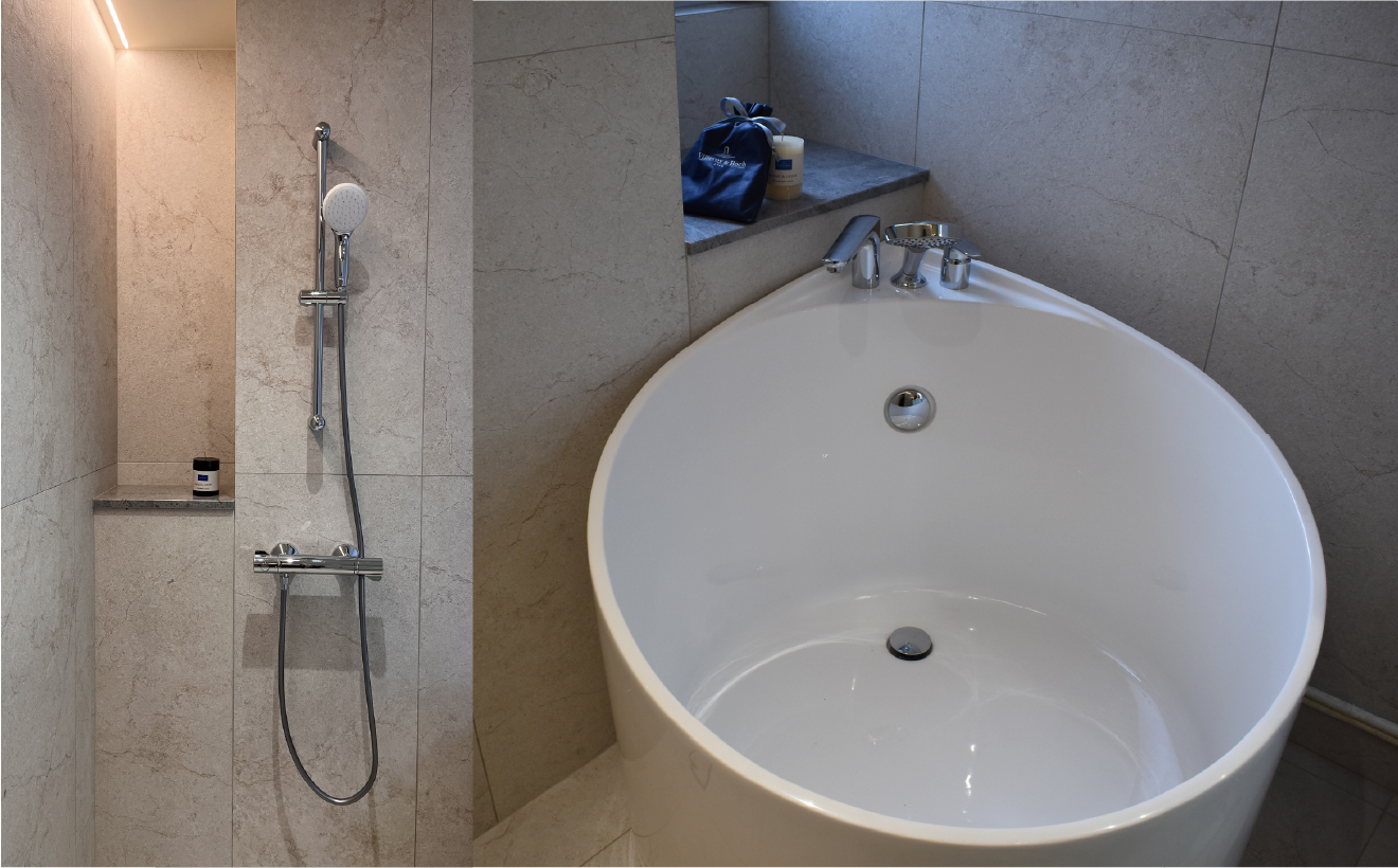 使用品牌/產品: Glass Design mini pl01 浴缸;Villeroy & Boch馬桶、面盆;GROHE龍頭、淋浴設備;Crosswater電腦馬桶