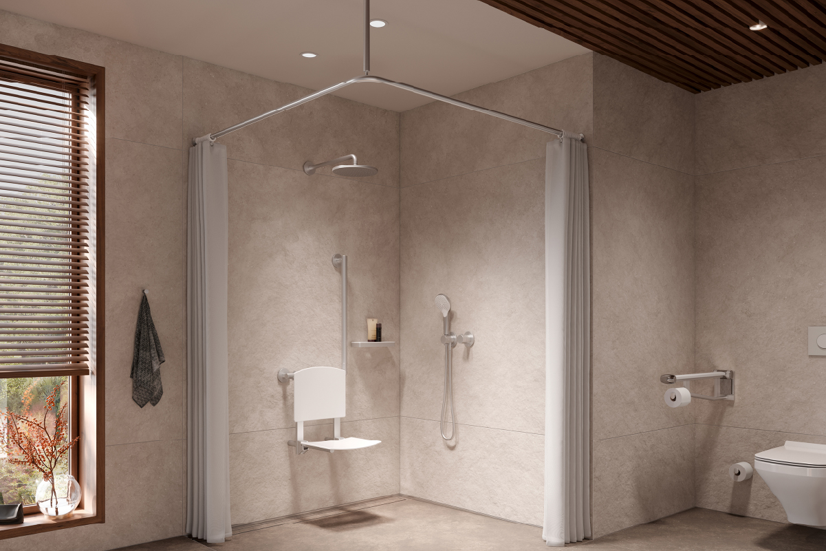 簡約卻有爆發力的設計,在AXESS淋浴握把中淋漓的展現;傳統需要固定於牆面的三角狀結構,如今搖身一變,使其在收納之際可平坦折疊靠攏於牆面,優雅宛如雕塑般的設計美感令人讚賞,又能在安全實用的功能下釋放空間,更為長輩和身障朋友,創造出自信、自在的生活樣貌。